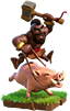 The Hog Rider is a fast ground troop with medium hit points, low damage, and the ability to jump over enemy Walls. He is unlocked at level 2 Dark Barracks.